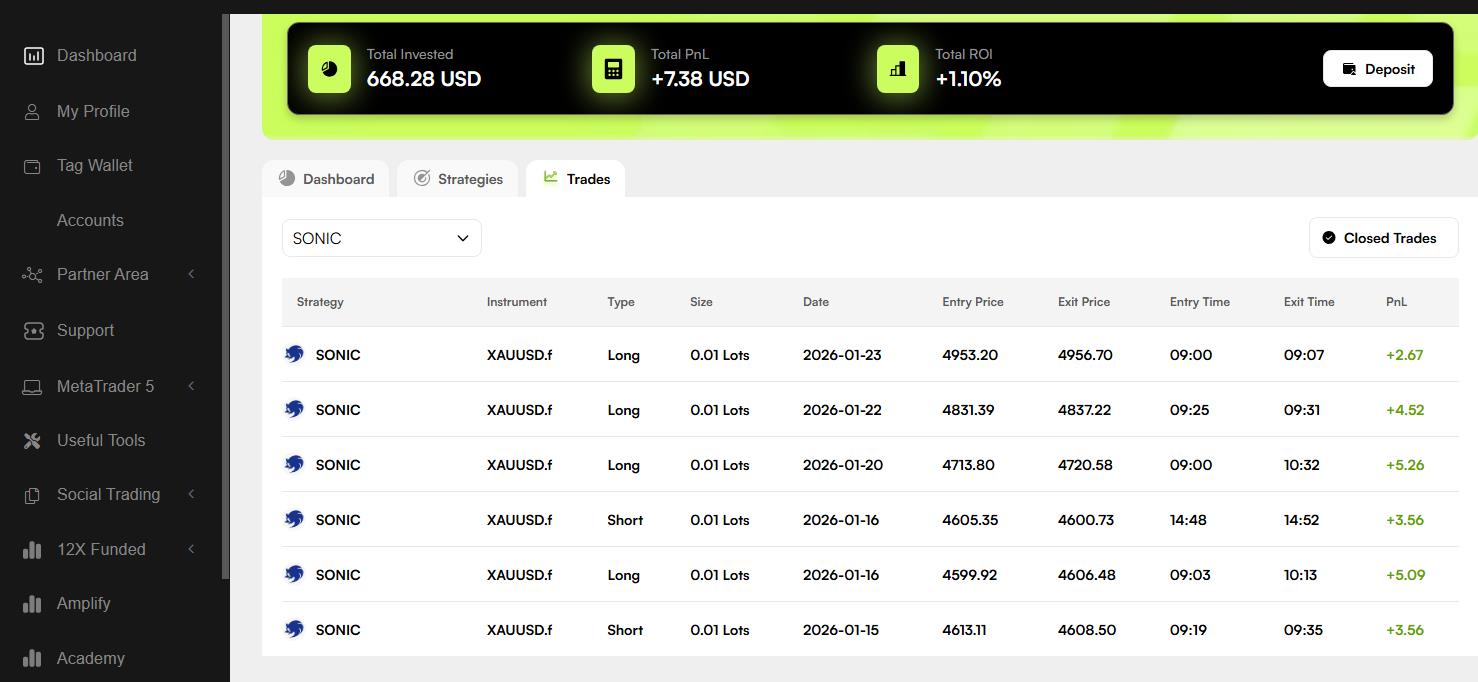 Handel w jednym miejscu. SONIC AI - Kopiuj automatycznie ruchy profesjonalnych traderów już od 10$ na kontach X24 od TagMarkets