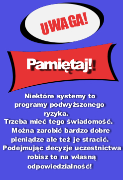 Nigdy, jak pisałem już wyżej nie inwestuj jeżeli nie stać Cię na stratę. Jeżeli będzie to Twój przysłowiowy „ostatni grosz przy duszy” to lepiej odłóż sobie tego typu zarabianie na później. Jest sporo pewnych programów które pozwalają zbudować Twój dochód pasywny ale jak wszystko a nawet te „pewniaki” czasami ulegają „upadkom”. Ja przyjmuje życiową swoją małą, prywatną strategie. Dla żadnego biznesu, kobiety, samochodu, domu, lekarza itd. nigdy nie przypiszę 100% pewności…zawsze może być ten ułamek który spowoduje że system się załamie i może pójść coś nie tak….więc zachowaj swój jeden procent niepewności, braku wiary w to, kto chce Ci ktoś przekazać …a daj mu… …tylko…..lub aż…99%